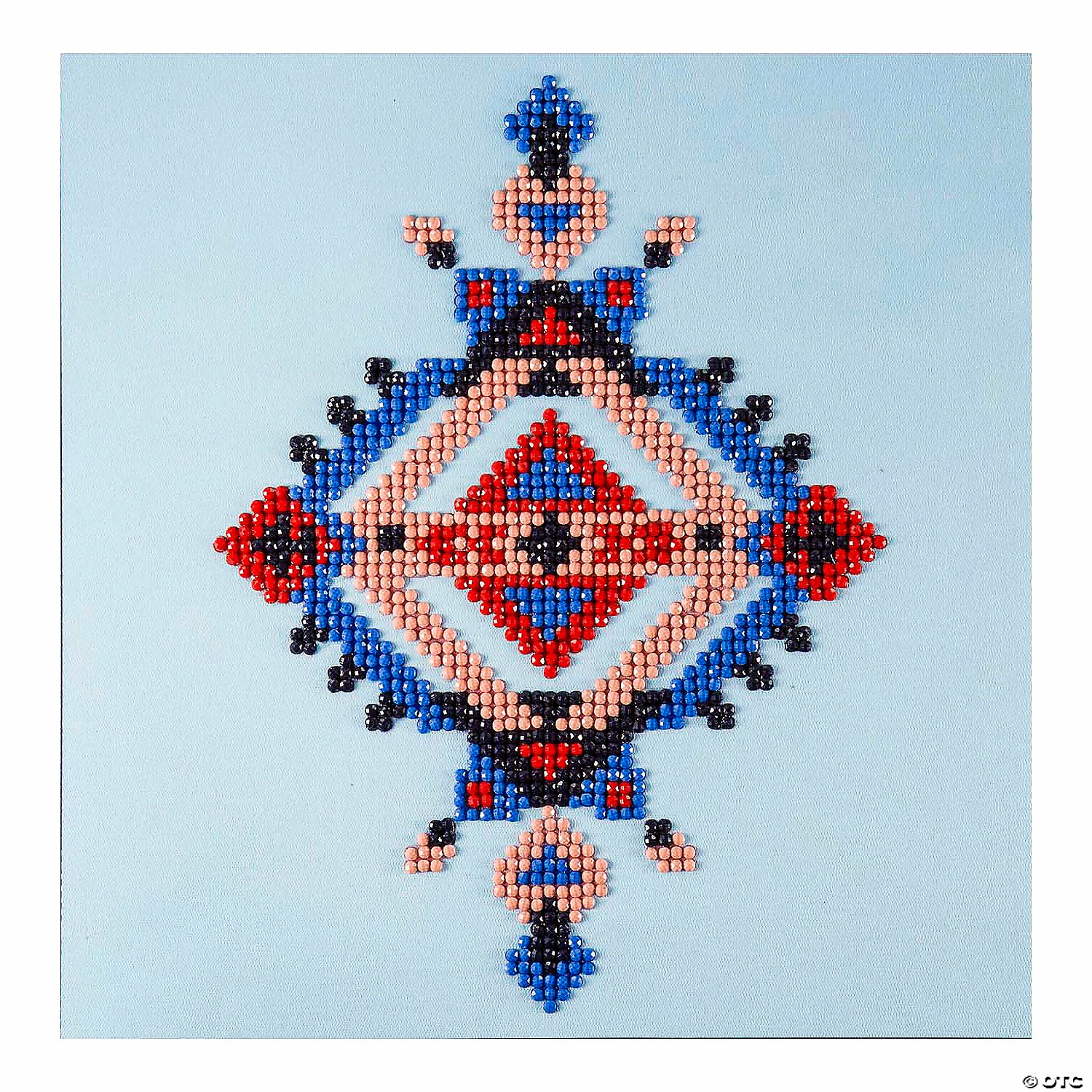 Dip, dot, dazzle and have fun with this diamond art craft project! Featuring a colorful tribal geometric pattern with a modern southwest vibe, this activity is relaxing to do on a rainy day or complete it in stages. Once finished, it would look great framed, displayed on a wall as home dΓ©cor or give it as a gift to someone special. Perfect for beginners! For ages eight and up. Includes one printed canvas, stylus, craft tray, wax piece, comfort grip and 0.4 oz pre-sorted diamond art gems. 11 3/4″ x 11 3/4″ Makes 1. Kit includes instructions.