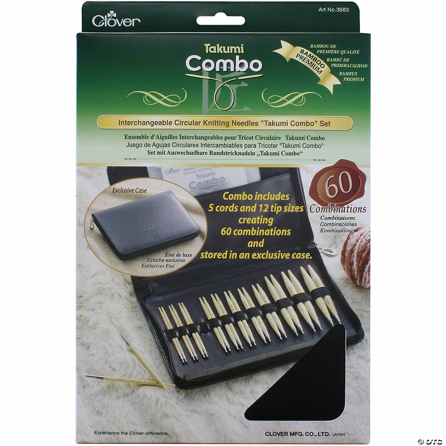 Takumi Interchangeable Circular Knitting Needle Set. Combine the assorted needles and cords in this set to create up to 60 possible combinations of circular needles. The perfectly shaped tip and silky finish of these high quality bamboo needles make knitting with Takumi smooth and simple. The precision finish of the joint connection between the needle and cord ensure a smooth slide for each stitch no matter the material. This package contains needles in US sizes 3, 4, 5, 6, 7, 8, 9, 10, 10.5, 11, 13, and 15 (metric: 3.25, 3.5, 3.75, 4, 4.5, 5, 5.5, 6, 6.5, 8, 9, and 10). Five cords: 16in (41cm), 24in (61cm), 29in (74cm), 36in (91cm), and 48in (120cm). All packed into an exclusive zippered synthetic leather case (6-1/2×9-3/4×1-1/4in).Special Shipping Information: This item ships separately from other items in your order. This item cannot ship to a P.O. Box. This item may be subject to additional processing days.