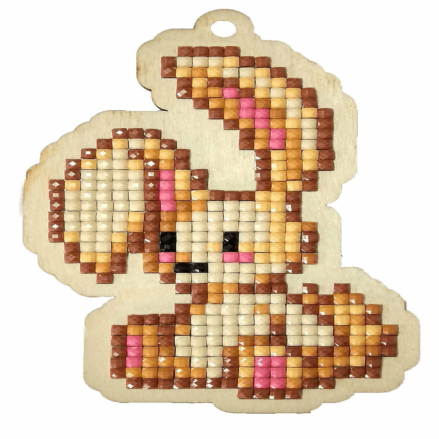 The kit contains: plywood base, double-sided adhesive, set of acrylic rhinestones in zip lock bags, pen, tray, support stand, magnet, silicone gel, instructions.