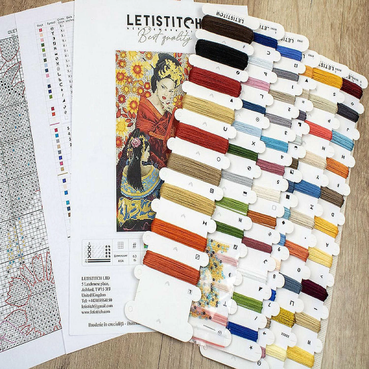 Kit contains: canvas(Zw. Aida16/264), Anchor/DMC.met./beads(65 colours), needle and instruction. Dimensions 38*27 cm / 14,96*10,63 in.
