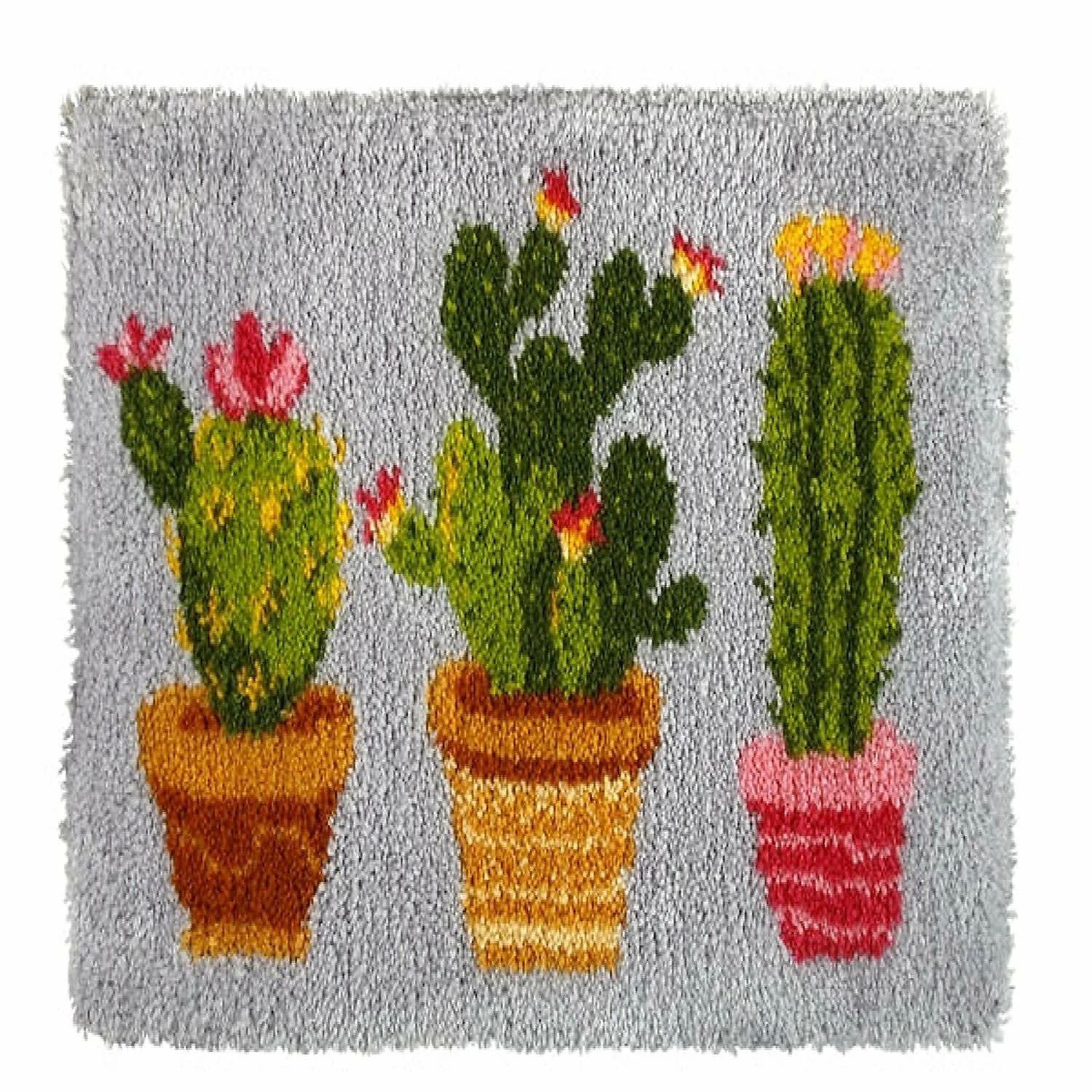 Kit contains: printed canvas Zweigart, 100% acrylic pre-cut yarn packs 9 colors, chart/instruction, latch-hook tool. Dimensions 50×74.5 cm/19.69×29.33 inches. Make your own fluffy, shaggy rug with modern, cactus design. Only high quality materials inside – pattern perfectly printed on Zweigart canvas, chunky acrylic yarn in bundles for your comfort and convenience as well as latch hook tool.