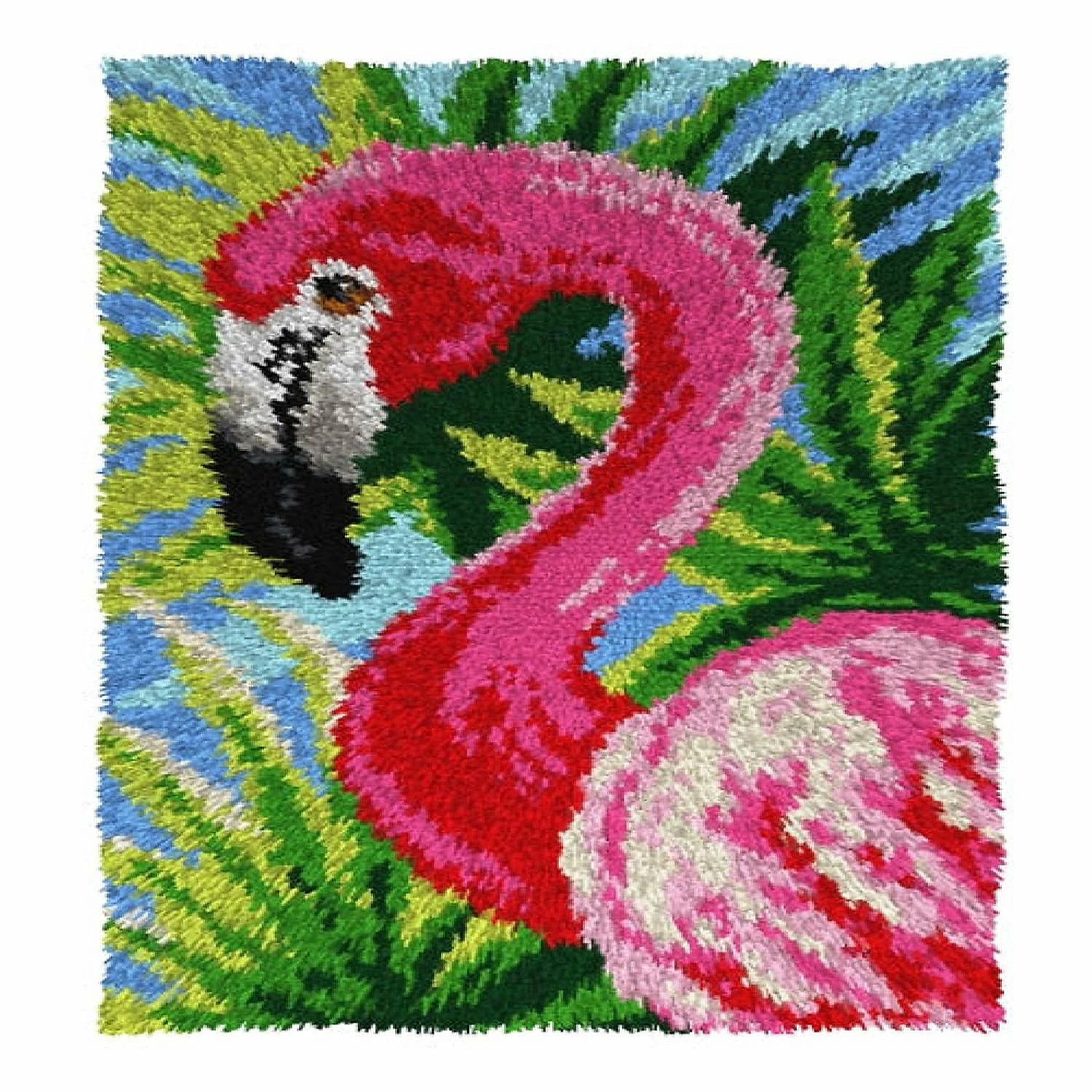 Kit contains: printed canvas Zweigart, 100% acrylic pre-cut yarn packs 16 colors, chart/instruction, latch-hook tool. Dimensions 50×74.5 cm/19.69×29.33 inches. Make your own fluffy, shaggy rug with modern, flamingos design. Only high quality materials inside – pattern perfectly printed on Zweigart canvas, chunky acrylic yarn in bundles for your comfort and convenience as well as latch hook tool.