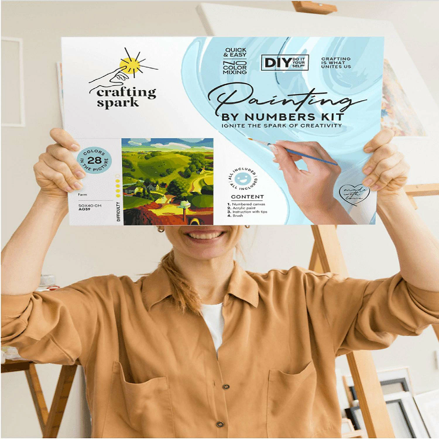 Painting by numbers is a relaxing and enjoyable craft activity that also works as a healing therapy and detox from the 24/7 digital world. Try this exciting hobby with Crafting Spark paint-by-number kits! Each kit contains all you need to get started right away โ a pre-printed numbered canvas, a set of acrylic paints, a brush and instructions.