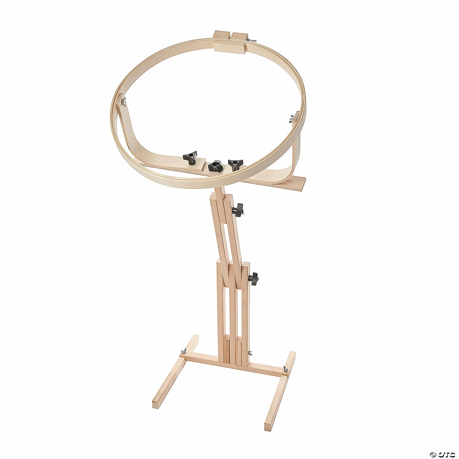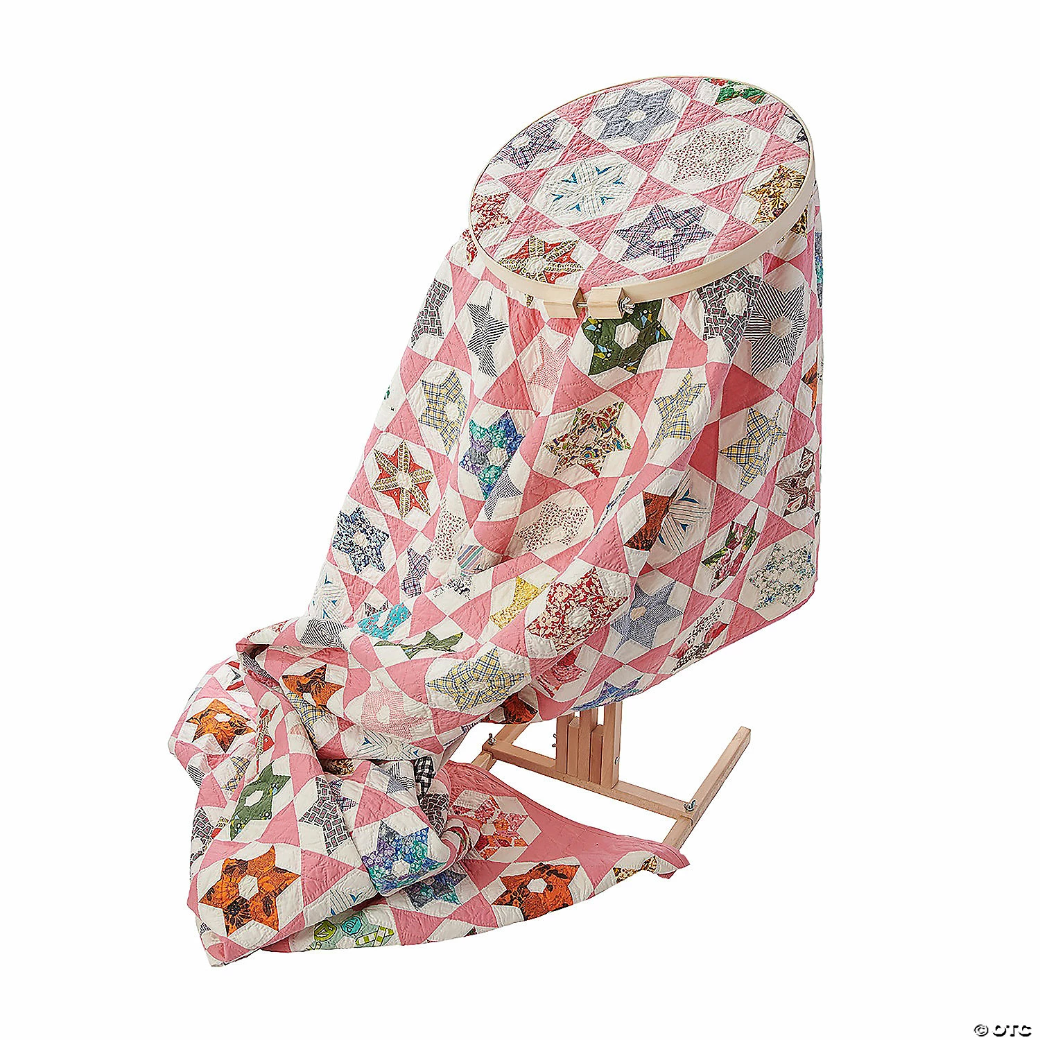 This stand rotates to your most comfortable working position and includes an adjustable base that brings the quilt to you for effortless stitching. Other great features include comfortable tension knobs allowing for easy fold down storage and hoop tilts so you can work on the underside of a quilt with ease. This 18.5×18.5×2 inch package contains one 18 inch hoop with stand. The base can be extended to 45 inches in height. Made in USA.