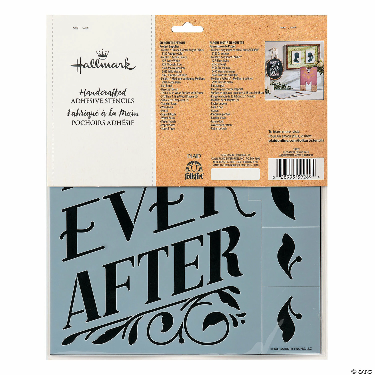 Add elegant designs to all sorts of DIY projects! Great for adult craft supplies, this collection of stencils includes an adhesive backing, which provides clean and professional-looking results. Whether you’re crafting DIY décor, gifts or party accents, a stencil set like this helps you make something truly wow-worthy in moments! Plastic. (3 pcs. per set) 8 1/2″ x 9 1/2″ © 2019 Hallmark Licensing, LLC.
