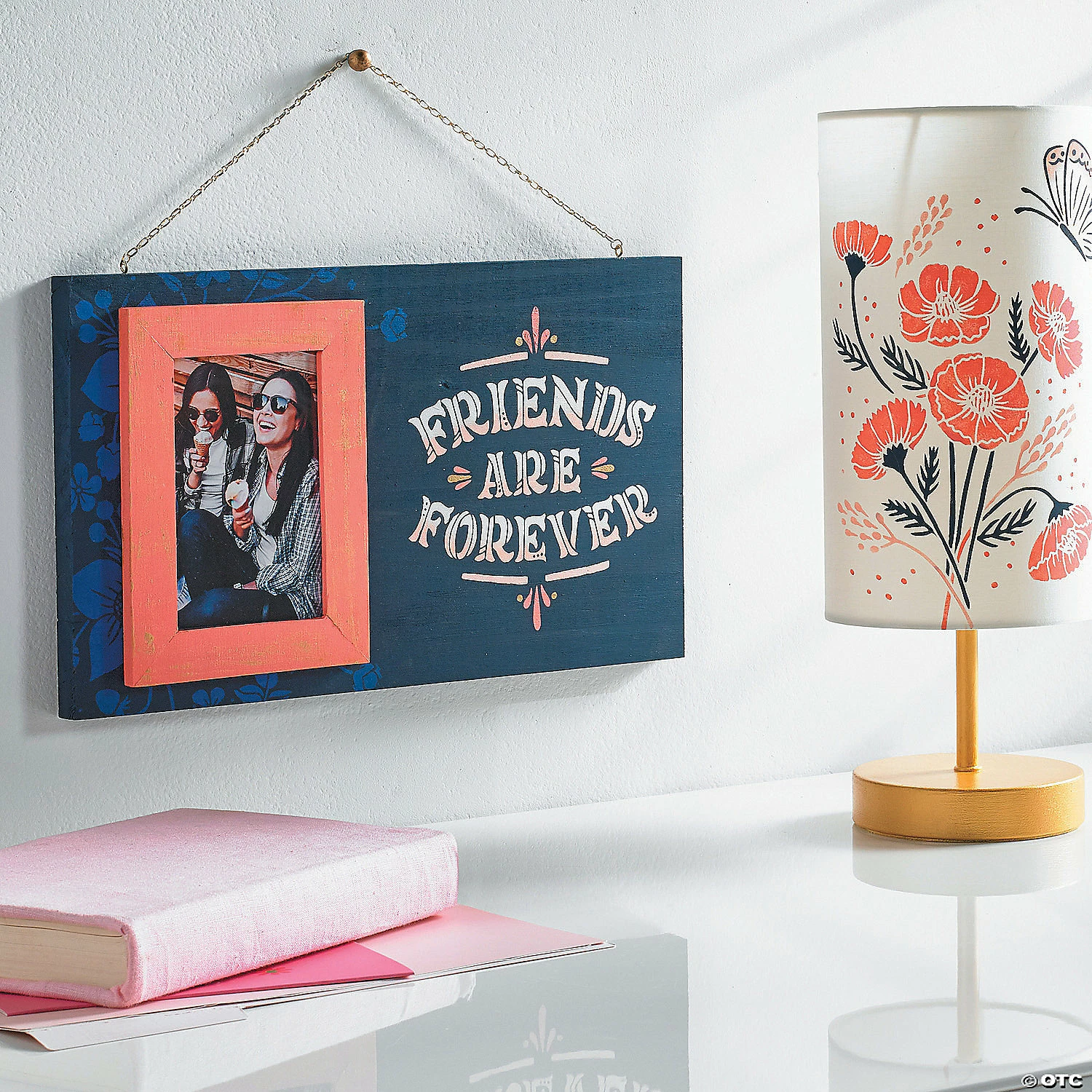 Take anything from drab to fab with laser-cut stencils like this! A great addition to adult craft supplies, these stencils include an adhesive backing, providing clean and professional-looking results. From adding sentimental sayings on wall art to creating a lamp stamped with floral flair, the opportunities to get creative are endless! Plastic. (3 pcs. per set) 8 1/2″ x 9 1/2″ © 2019 Hallmark Licensing, LLC.