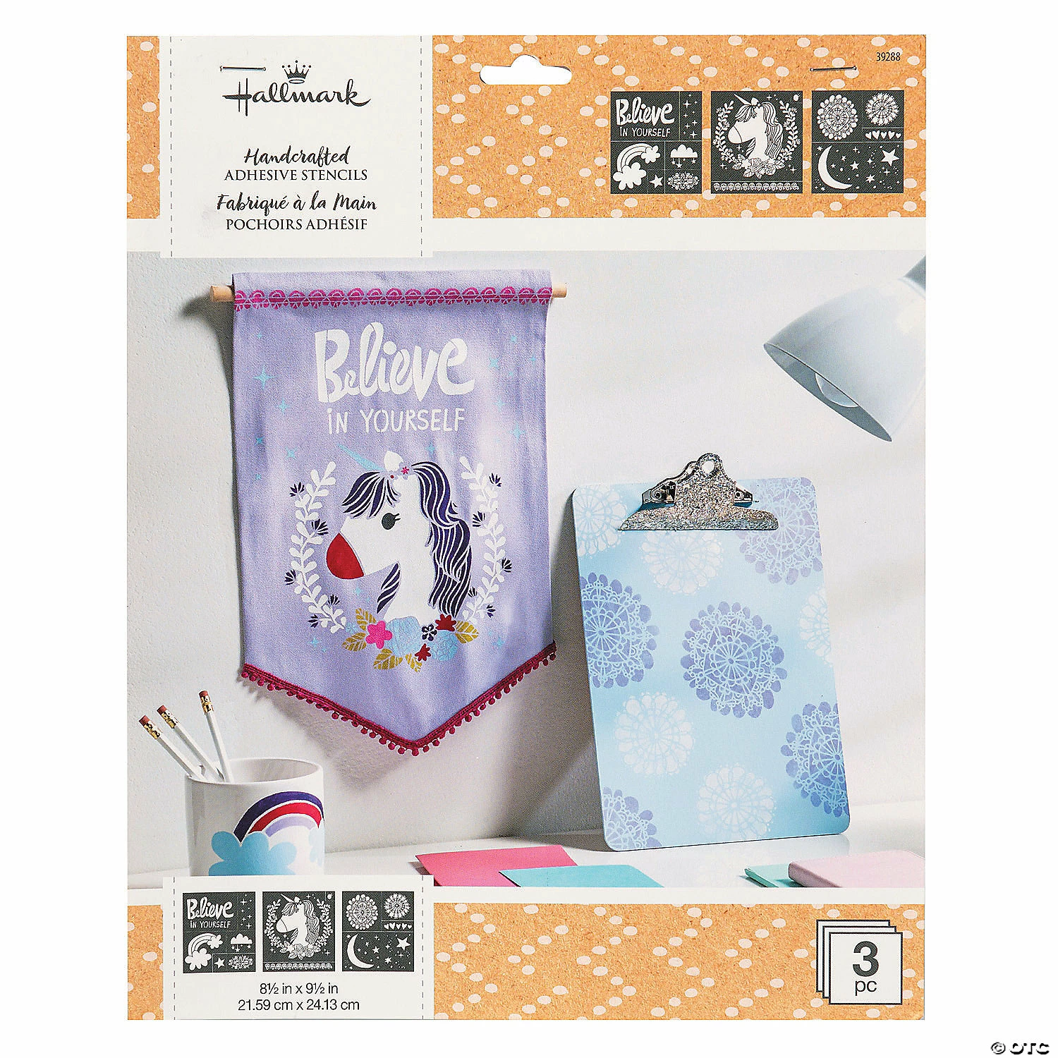 Pretty up all sorts of DIY projects for your little princess! Featuring designs of unicorns, stars, rainbows and more, this laser-cut stencil set adds a perfectly feminine touch to craft supplies. Whether you’re carefully crafting a gift for your girl or she wants to get creative herself, you can add a royal look to almost anything now! Plastic. (3 pcs. per set) 8 1/2″ x 9 1/2″ © 2019 Hallmark Licensing, LLC.