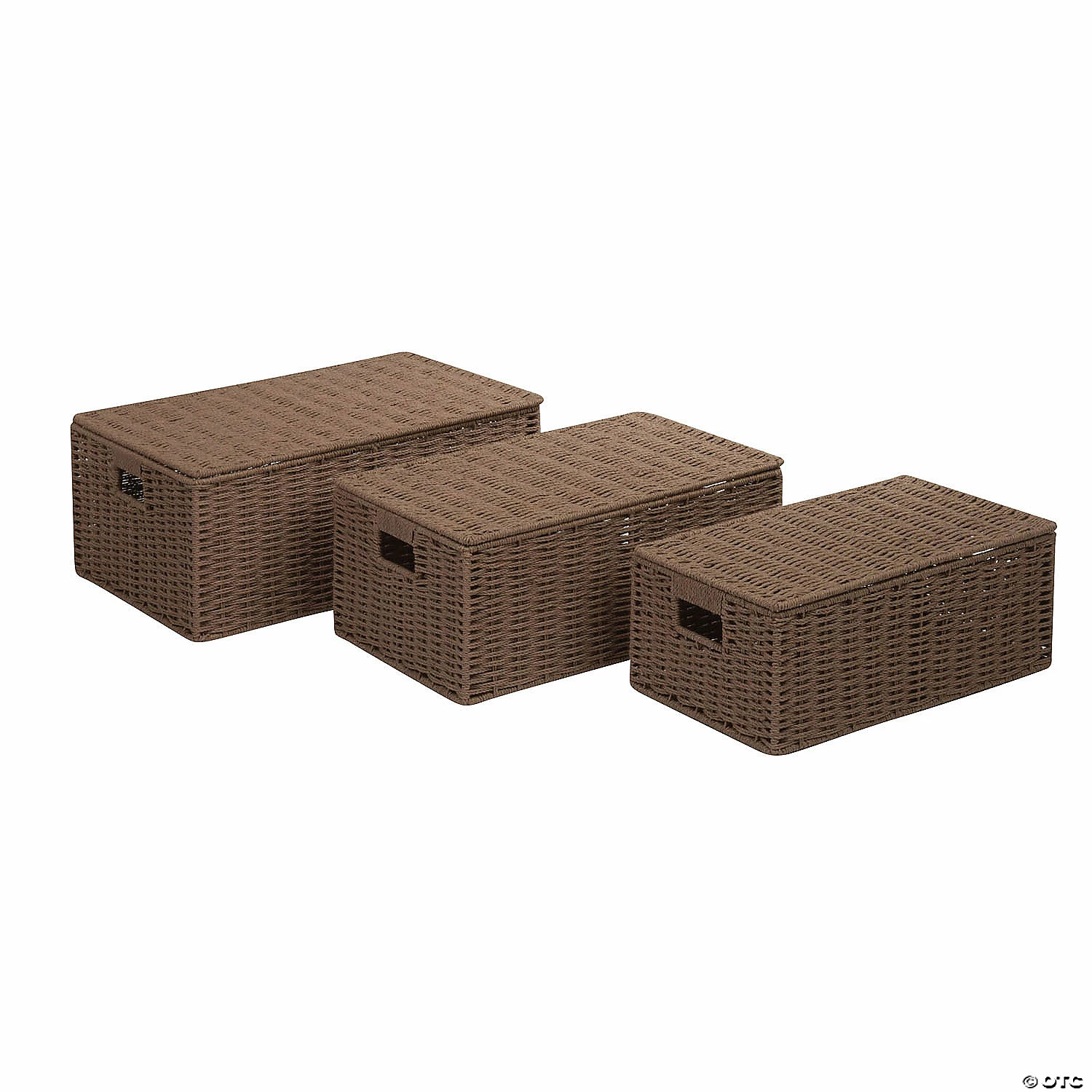 Honey-Can-Do STO-03557 3-Piece Set Paper Rope Baskets, Taupe. Keep clutter at bay with our three piece set of paper rope baskets. Available in three sizes, this set of baskets provides endless storage options for any room of the house, and the hinged lid keeps contents out of sight. Built-in carrying handles make for easy transport. Product Sizes: Small – 13.75″L x 8.5″W x 5.25″H; Medium – 15.5″L x 10.25″W x 6″H; Large – 17″L x 11.5″W x 6.5″H Product Dimensions:17x12x7.25″ Special Shipping Information: This item ships separately from other items in your order. This item cannot ship to a P.O. Box. This item may be subject to additional processing days. ITEM IS NOT ELIGIBLE FOR EXPEDITED SHIPPING