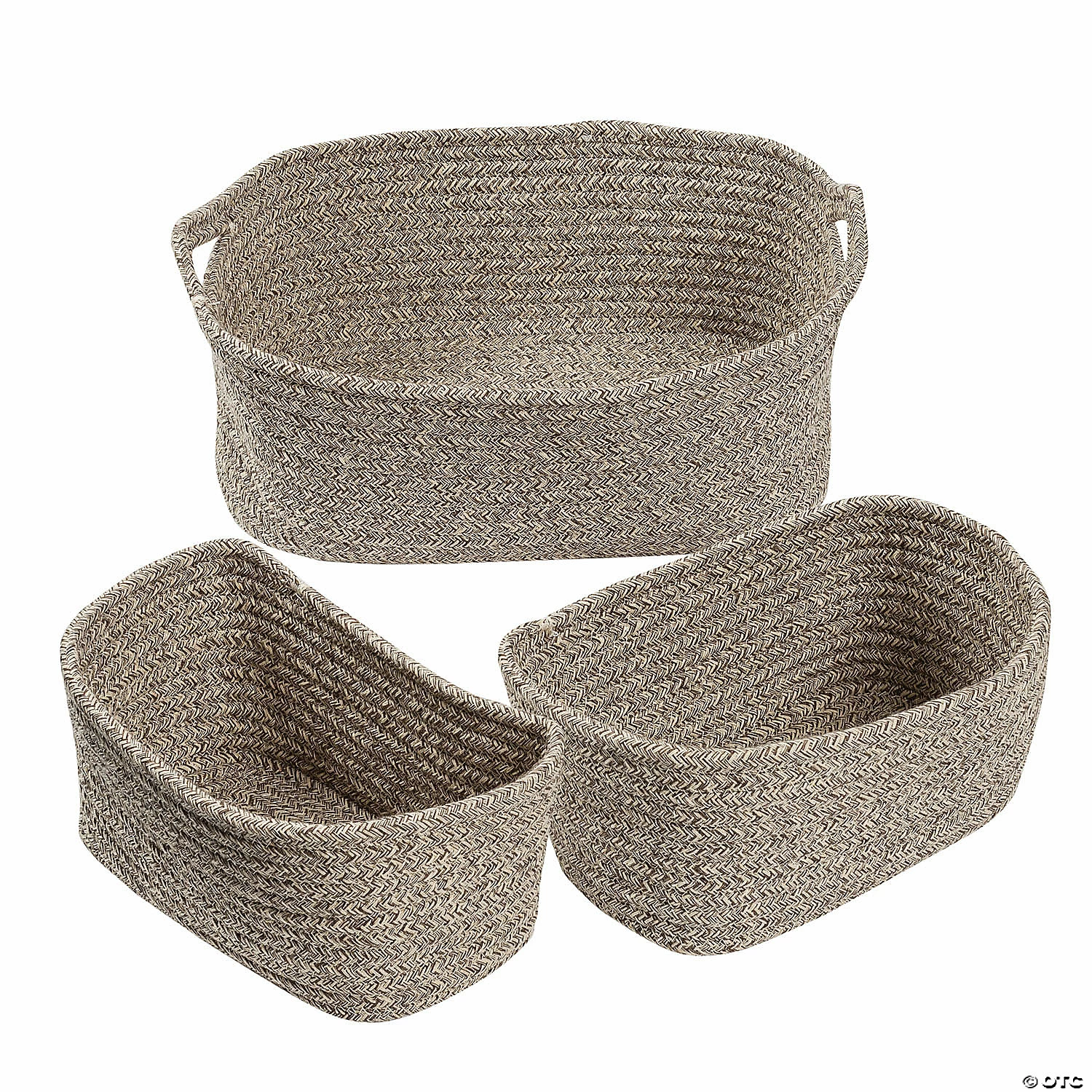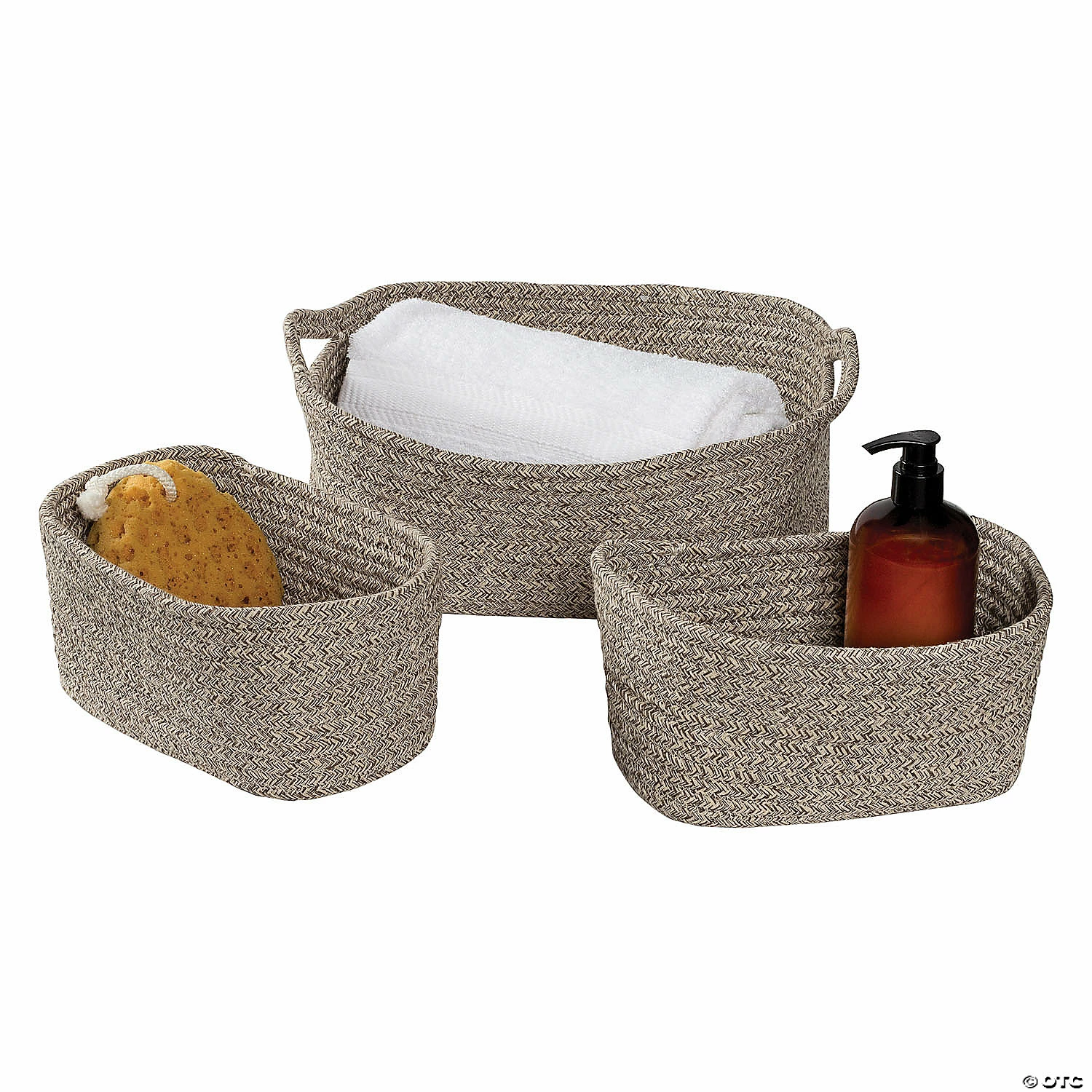 Bathroom storage made easy with these 3 nested baskets made of marled cotton cording. Ideal for small accessory bathroom storage, the two smaller baskets and one large basket are great for hair accessories, makeup and more. Easy-carry handles provide easy transport of your items and the soft aesthetic will ease right into your bathroom space. Product Dimensions:13×10.64×5.51″