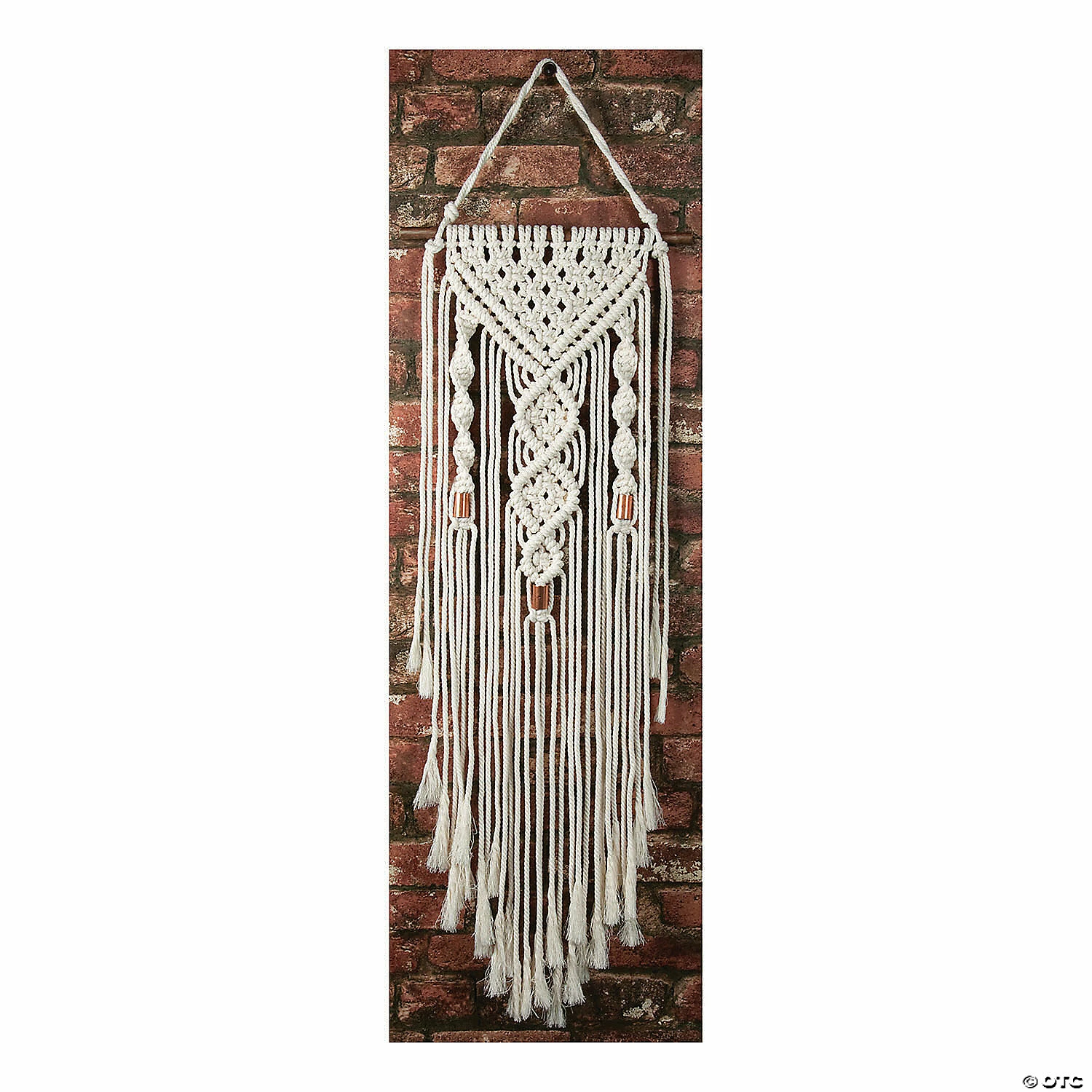 The macrame wall hanging features unique patterns. Hang in a room to add interest to your home decor. This 9.25×13 inch package contains cotton cording, natural branch hanging rod, copper tube accents and instructions. Finished size approximately 10×36 inches. Imported. Special Shipping Information: This item ships separately from other items in your order. This item cannot ship to a P.O. Box. This item may be subject to additional processing days. ITEM IS NOT ELIGIBLE FOR EXPEDITED SHIPPING