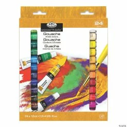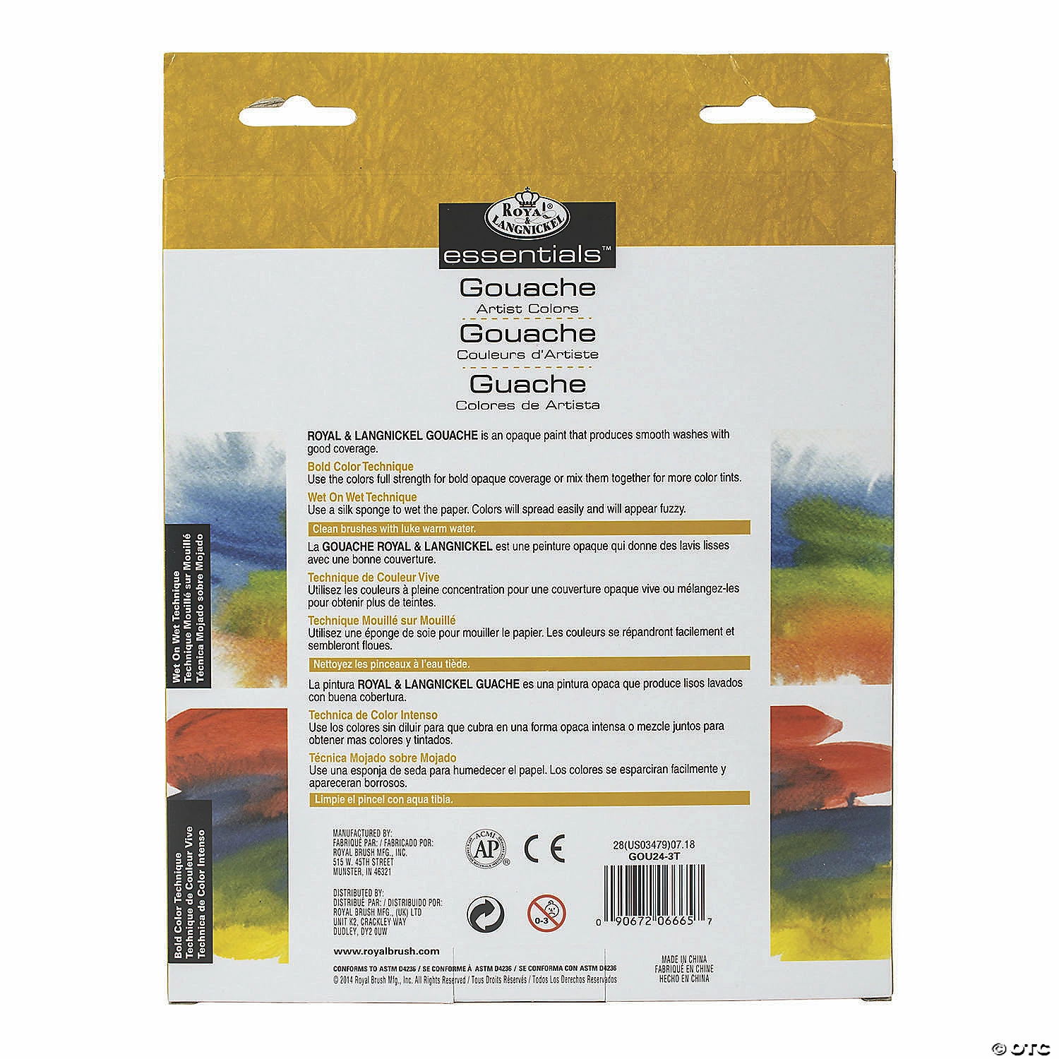 Royal Brush-Gouache Acrylic Paints: Assorted Colors. These paints have great opacity and reflective characteristics! Use the colors full strength for bold opaque coverage or mix them together for more color tins. This package contains twenty-four 12ml tubes of acrylic paints in assorted colors. Conforms to ASTM D 4236. Imported.
