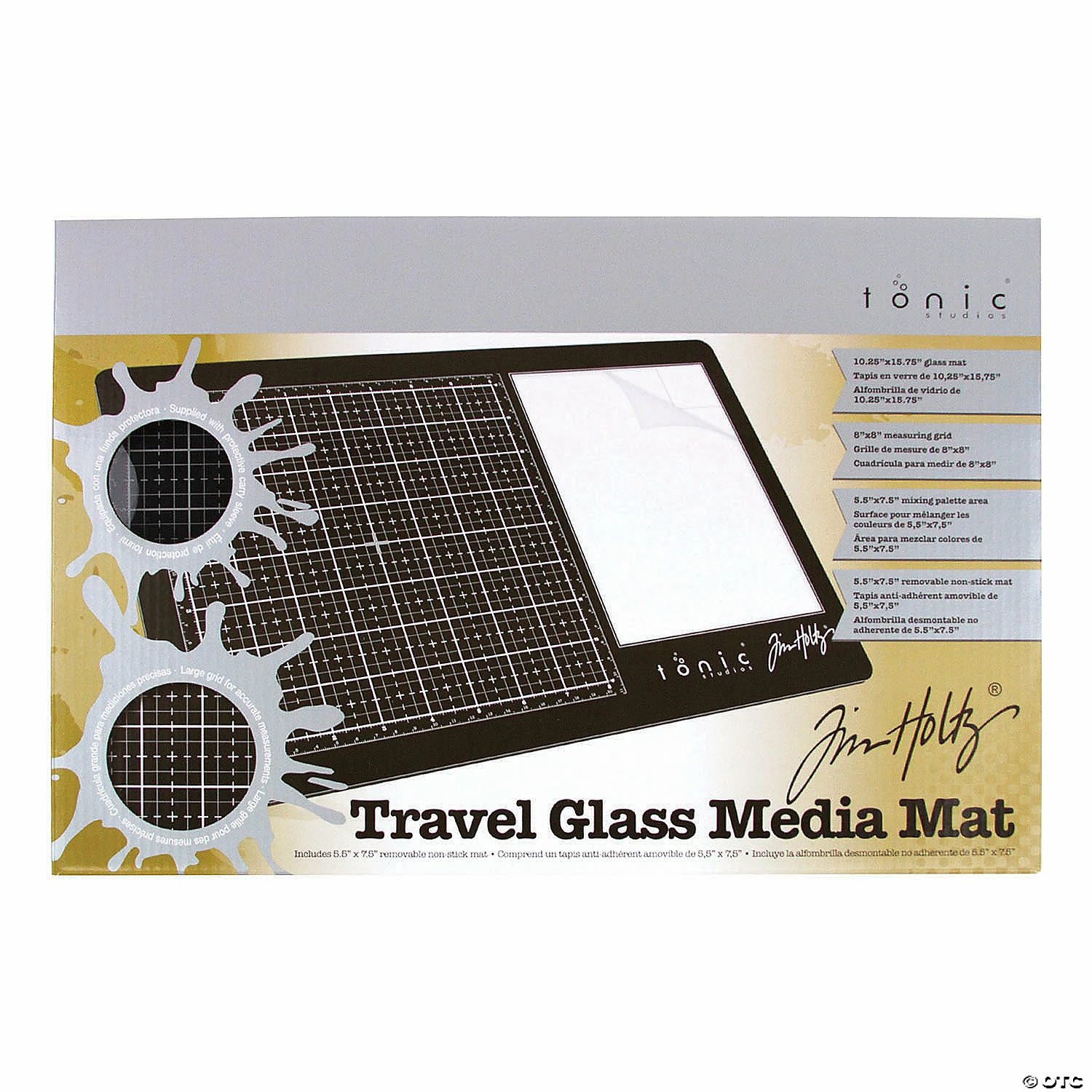 Whether making on the move or maximizing your workspace, the Tim Holtz Travel Media Mat is the perfect multi-functional tool to begin your creative journey. This package contains one 15.75×10.25 inch travel glass media mat with an 8×8 inch imperial and metric measuring grid, 5.5×7.5 inch mixing palette area, removeable nonstick mat and protective carry case. Imported. Special Shipping Information: This item ships separately from other items in your order. This item cannot ship to a P.O. Box. This item may be subject to additional processing days. ITEM IS NOT ELIGIBLE FOR EXPEDITED SHIPPING